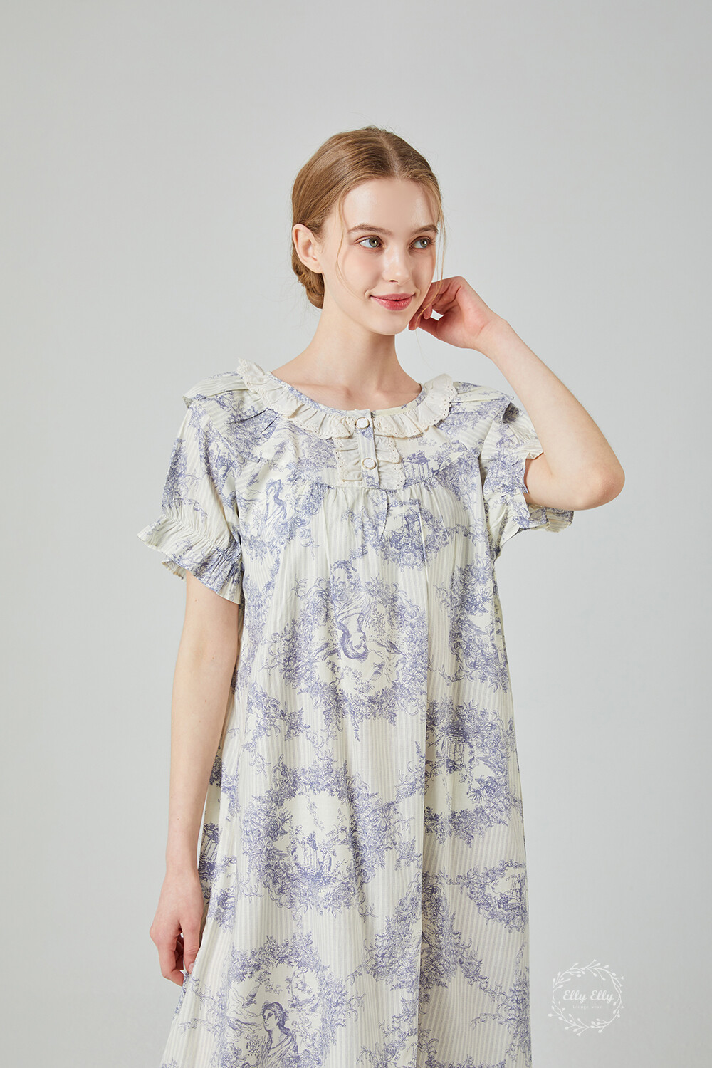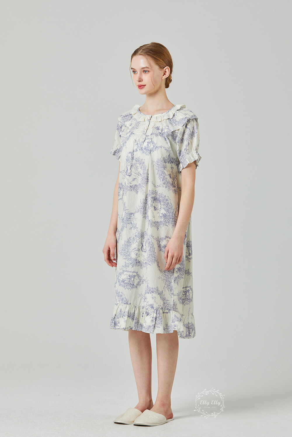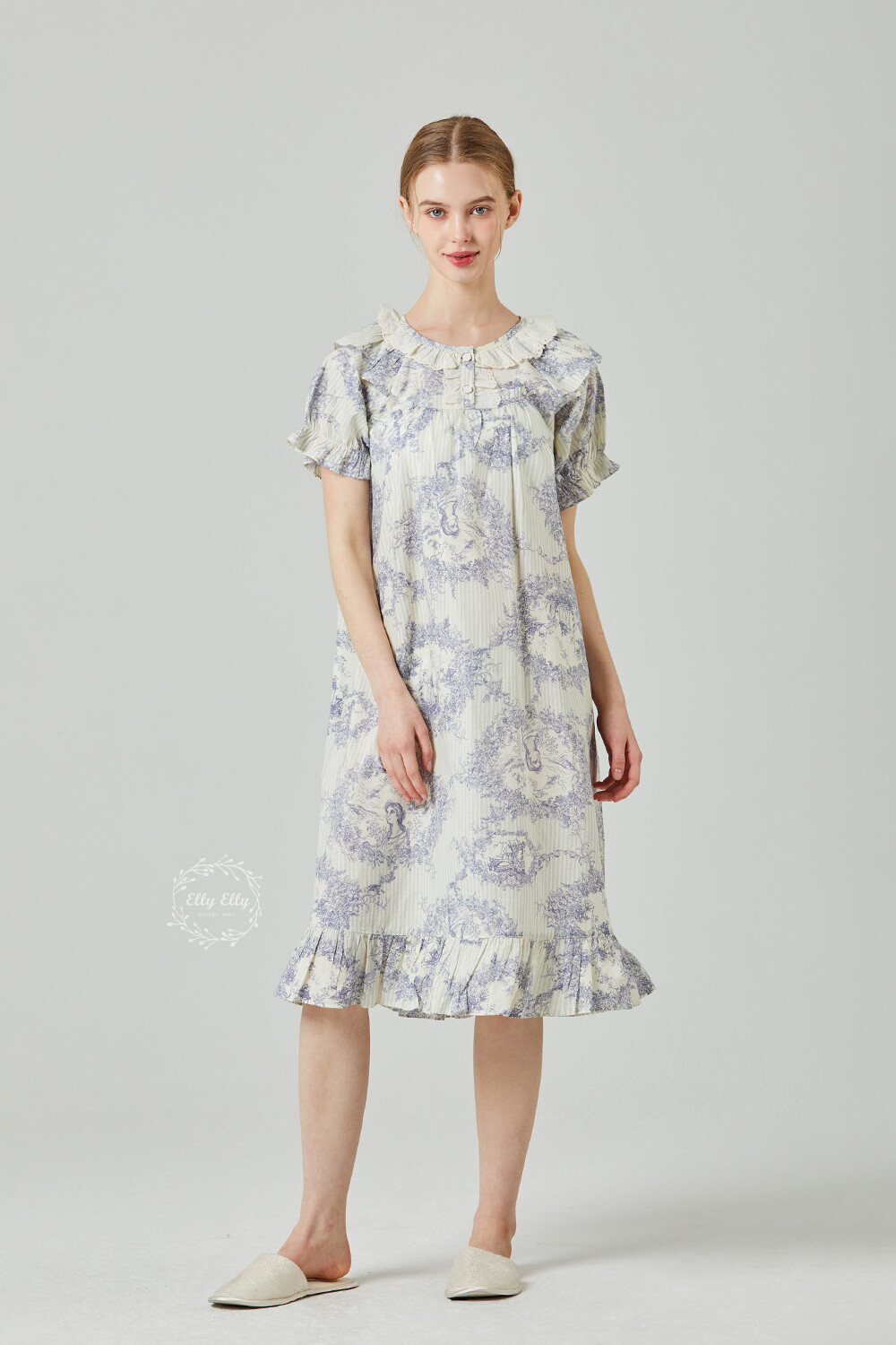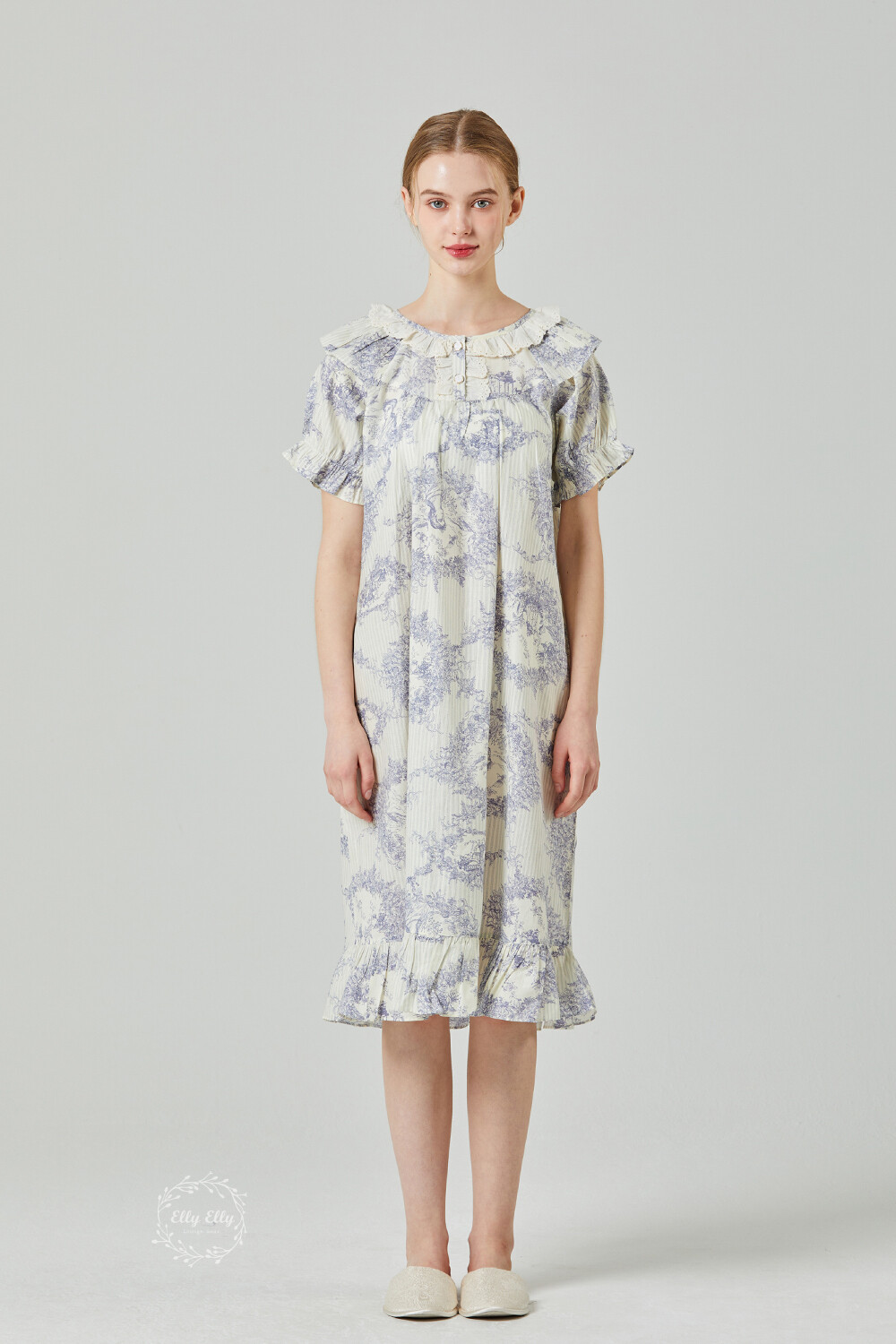 LL-806 엘리엘리 정품 명화그림 프릴레이스 여성 반팔드레스 네이비