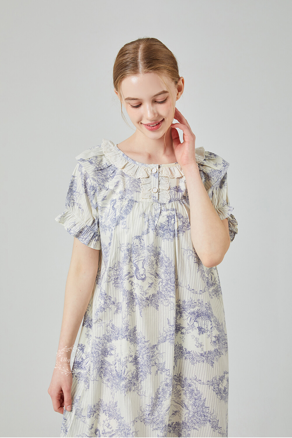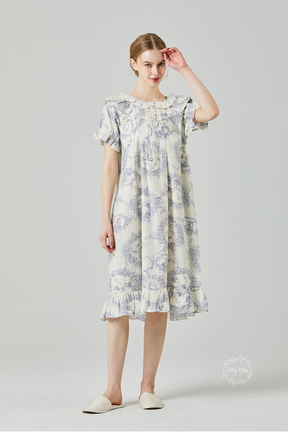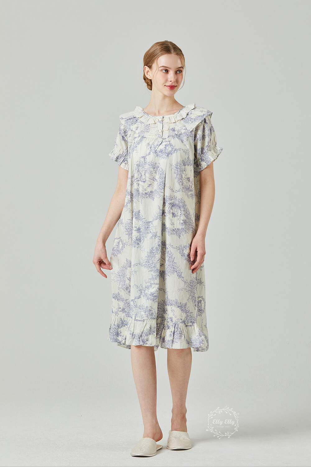 LL-806 엘리엘리 정품 명화그림 프릴레이스 여성 반팔드레스 네이비