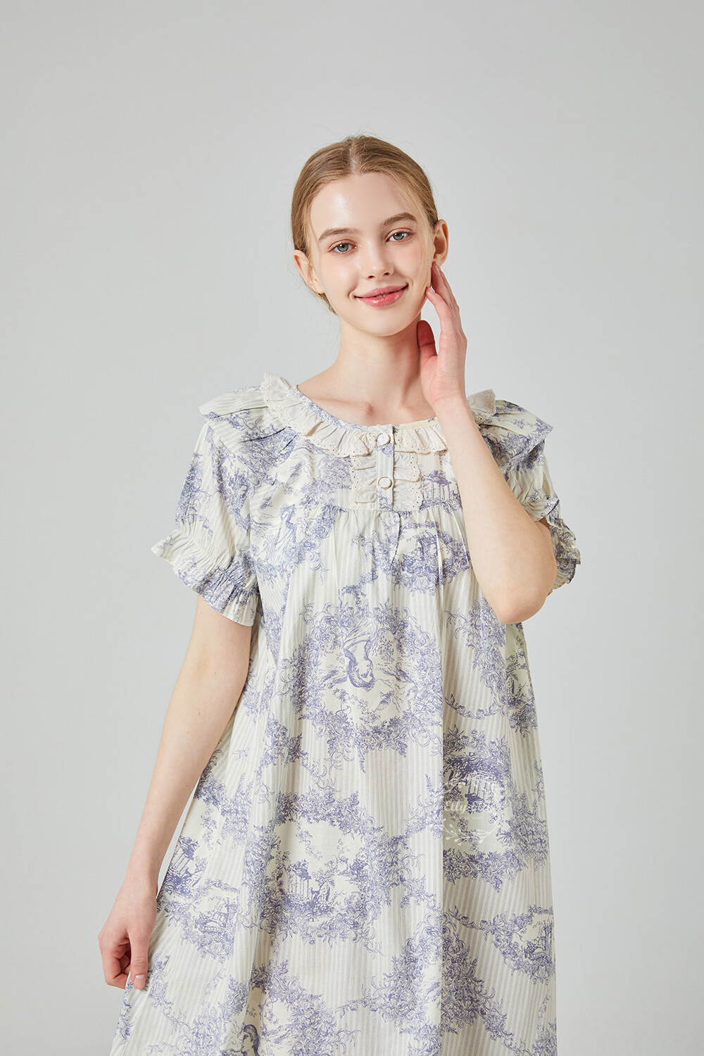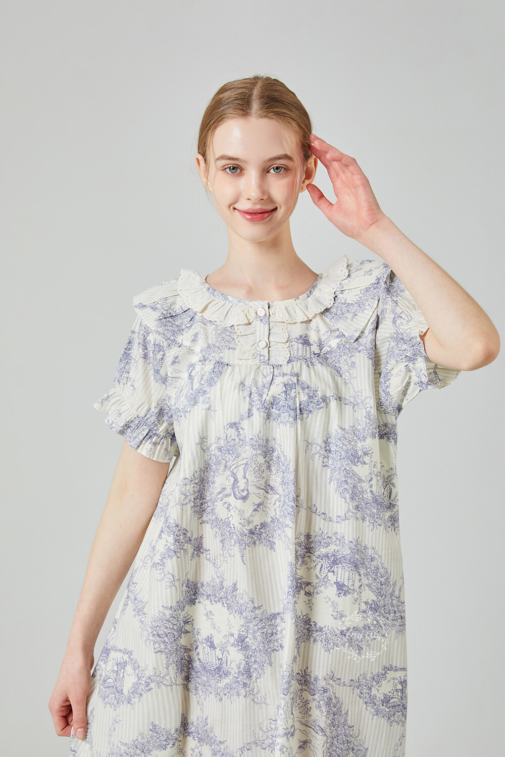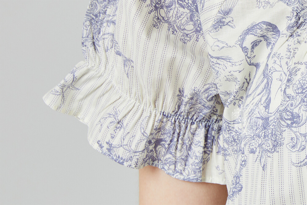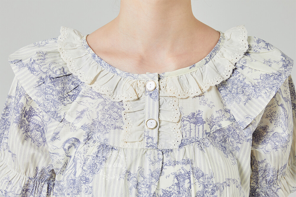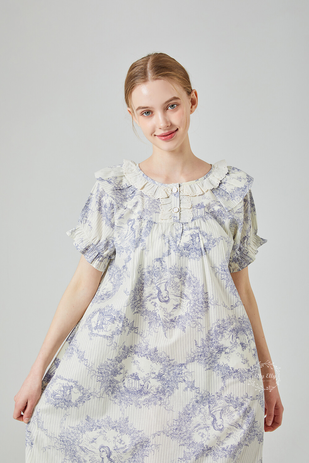 LL-806 엘리엘리 정품 명화그림 프릴레이스 여성 반팔드레스 네이비