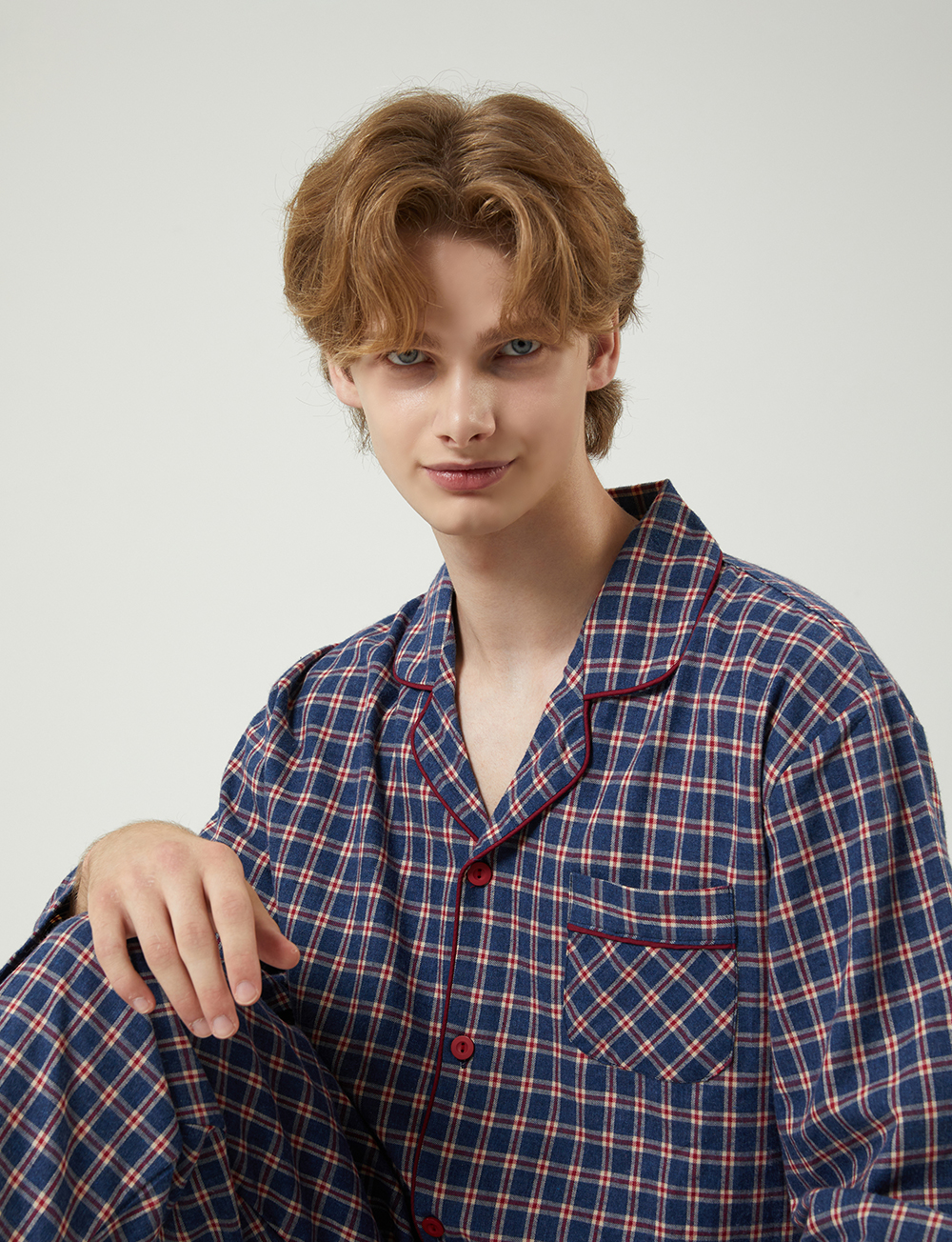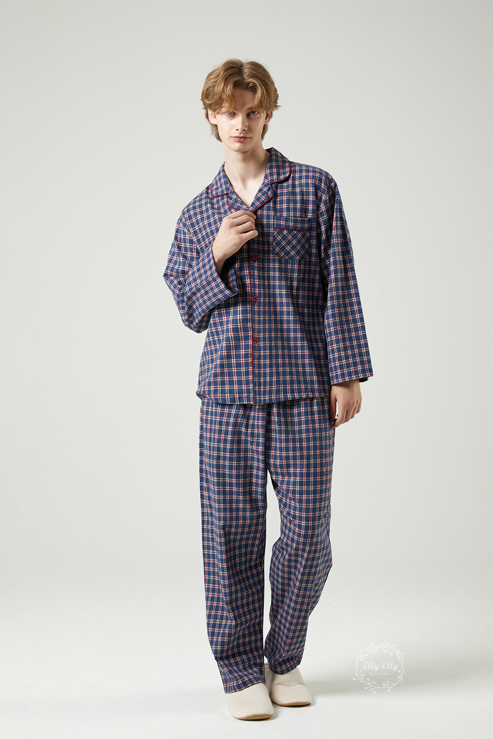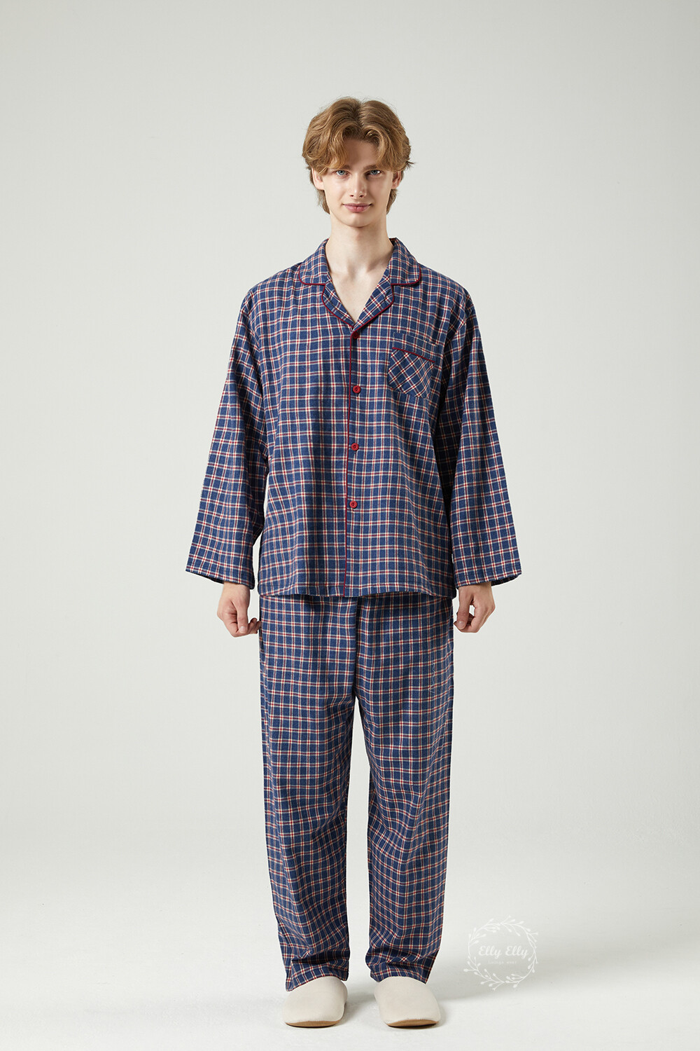 LL-814 엘리엘리 정품 체크무늬 기모 와이카라 남성 긴팔상하 긴팔페어
