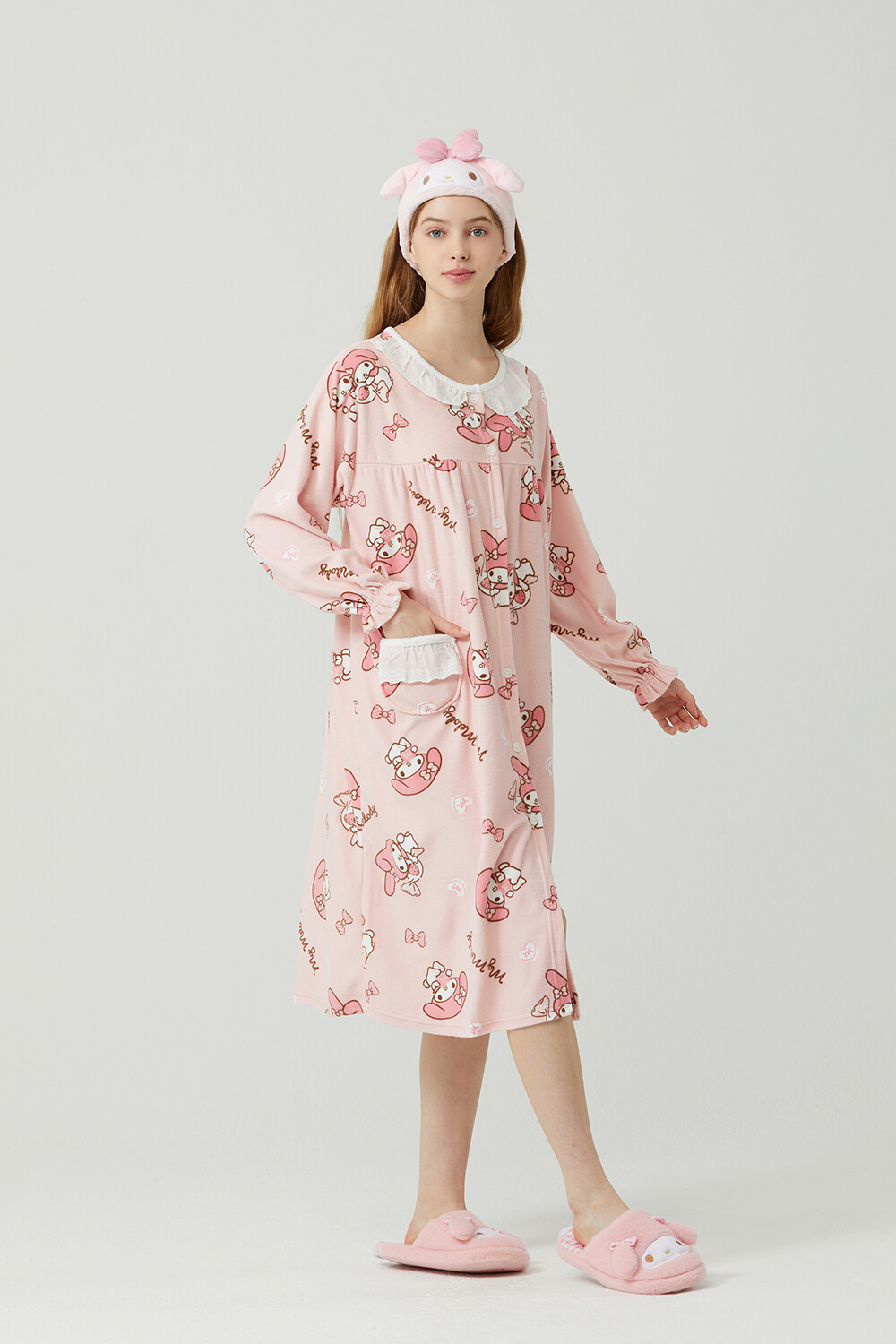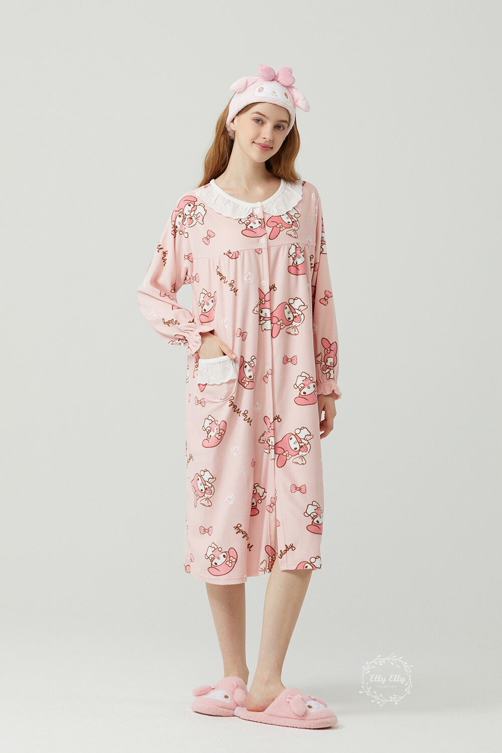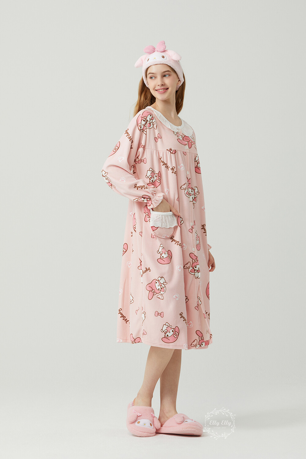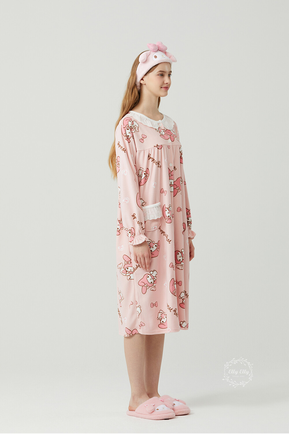 MM-0047 산리오정품 마이멜로디 극세사 여성 긴팔원피스 드레스잠옷