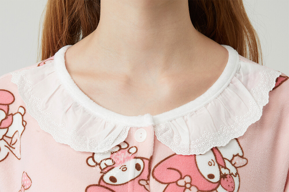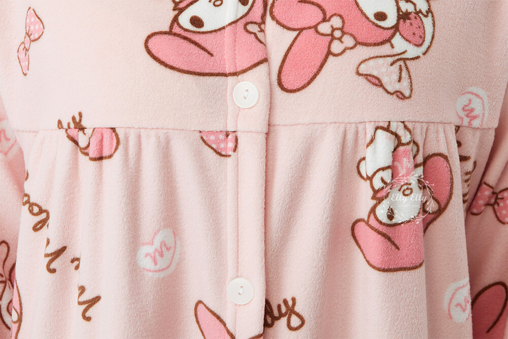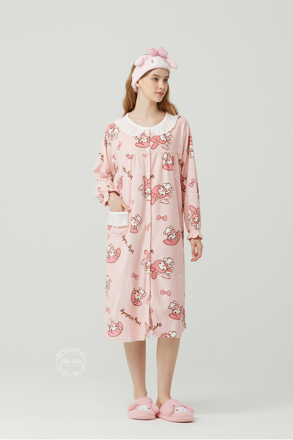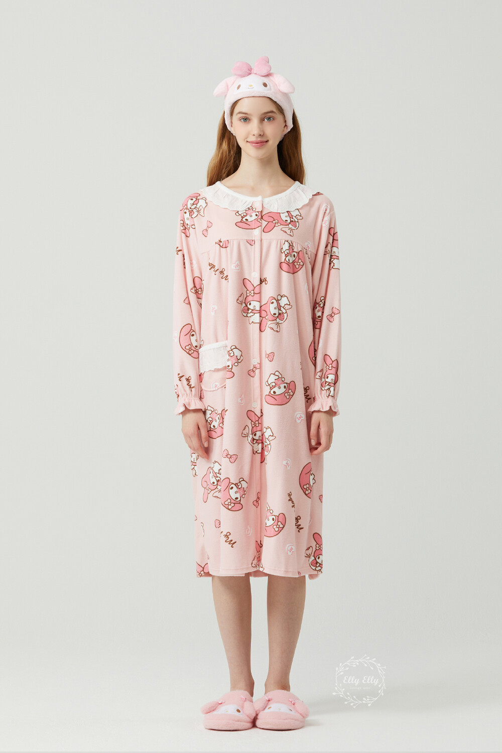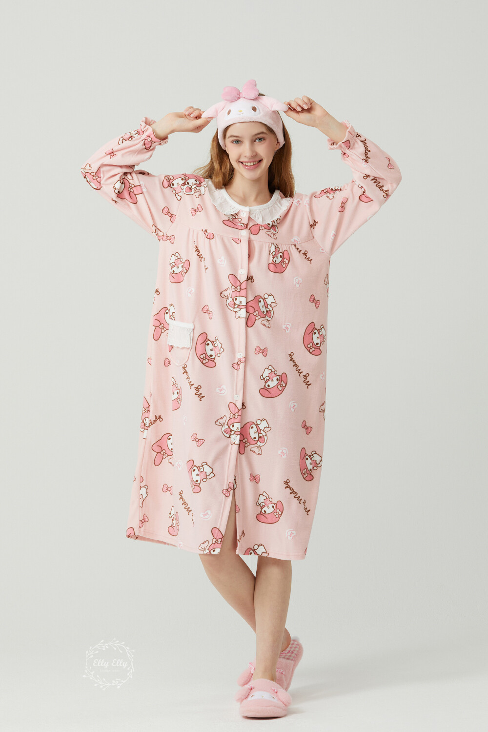 MM-0047 산리오정품 마이멜로디 극세사 여성 긴팔원피스 드레스잠옷