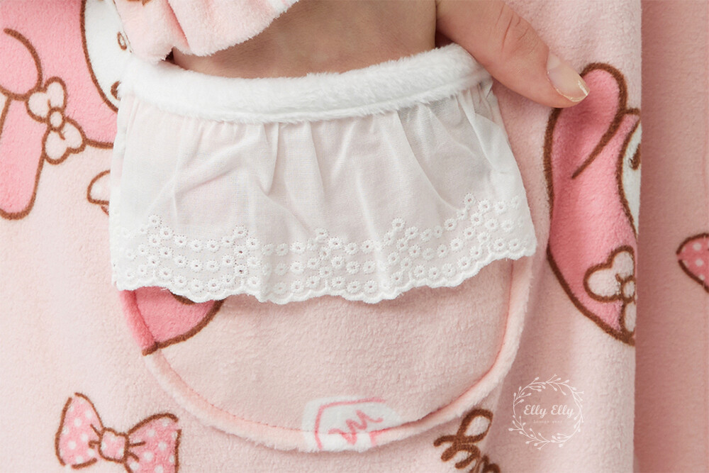 극세사, 마이멜로디 패턴, 레이스 네크라인,