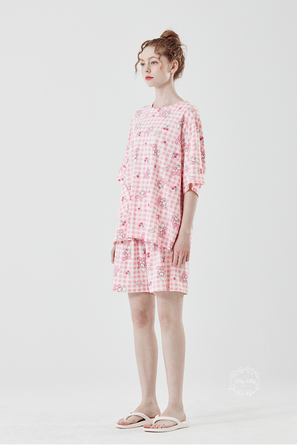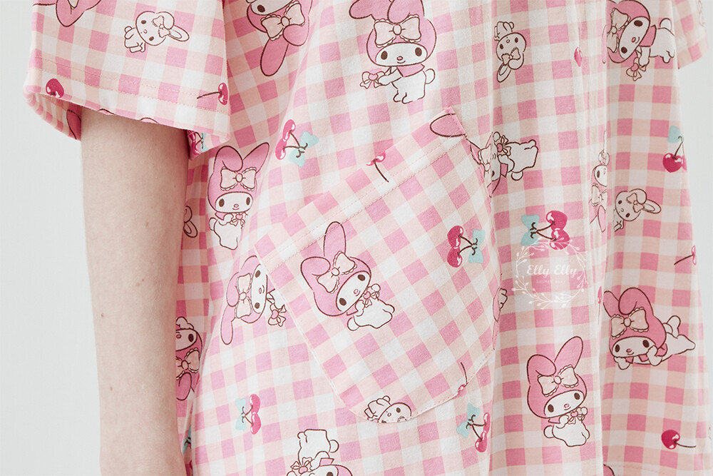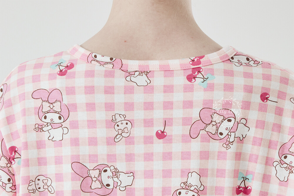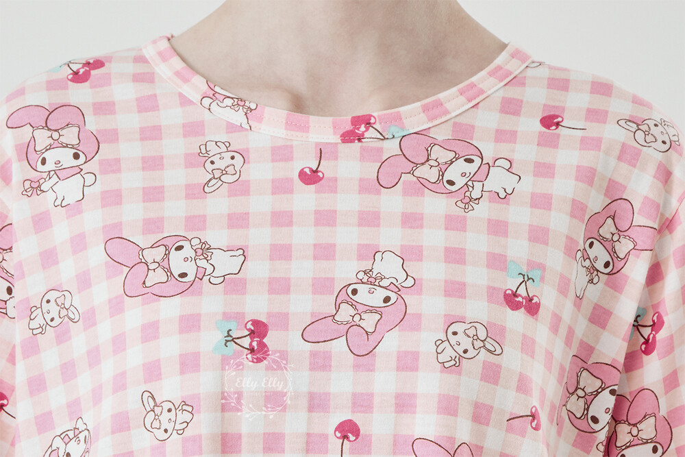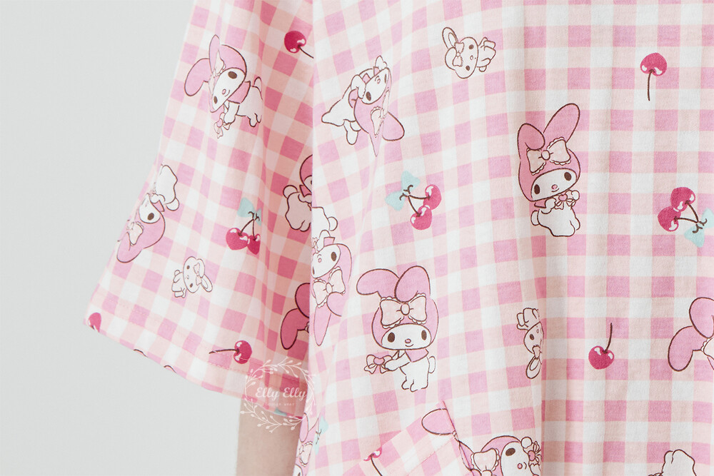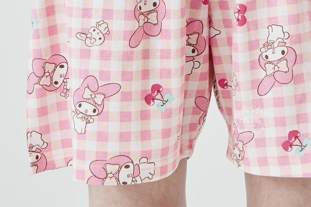 MM-0052 산리오정품 마이멜로디 체크무늬 다이마루 반팔상하
