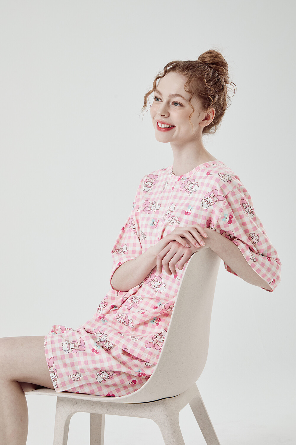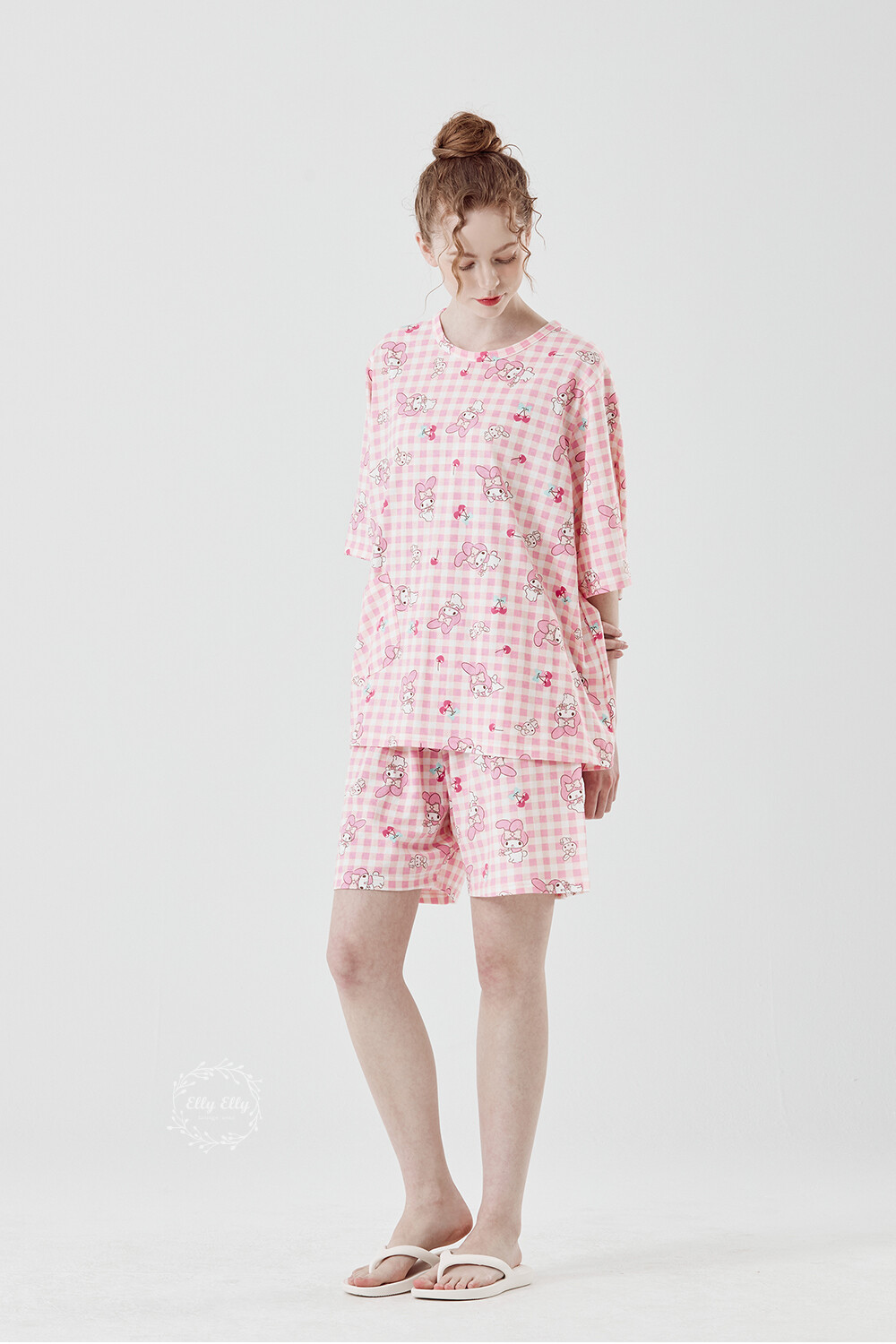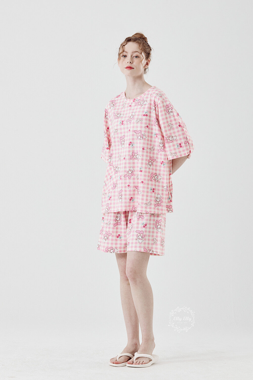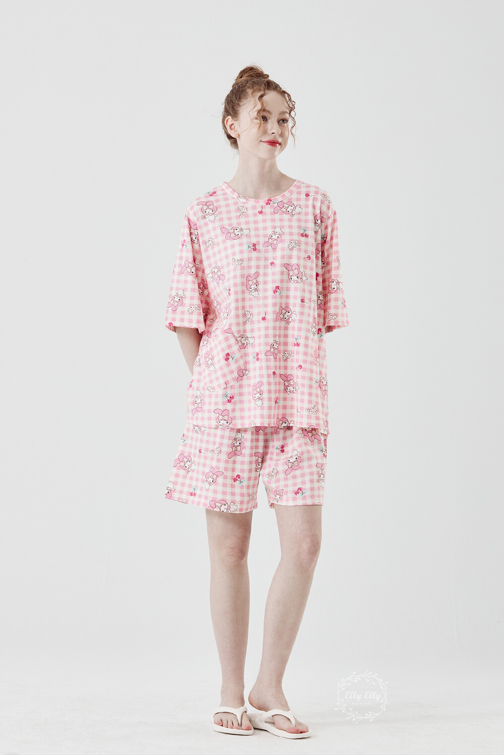 MM-0052 산리오정품 마이멜로디 체크무늬 다이마루 반팔상하