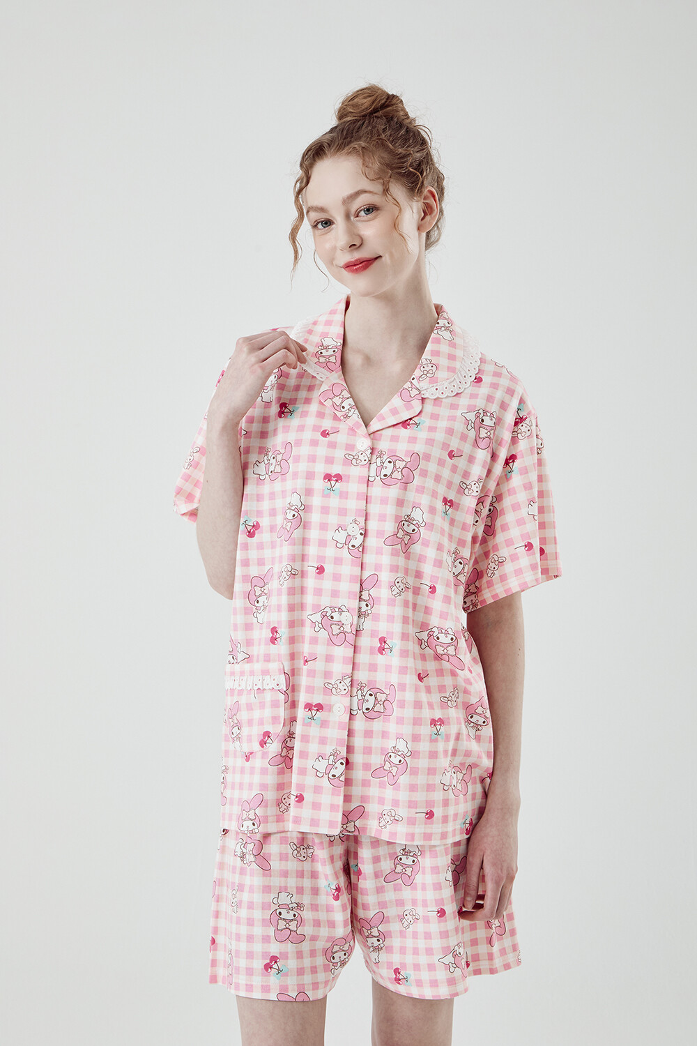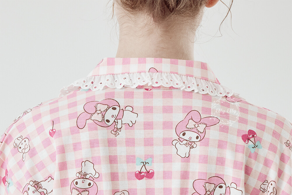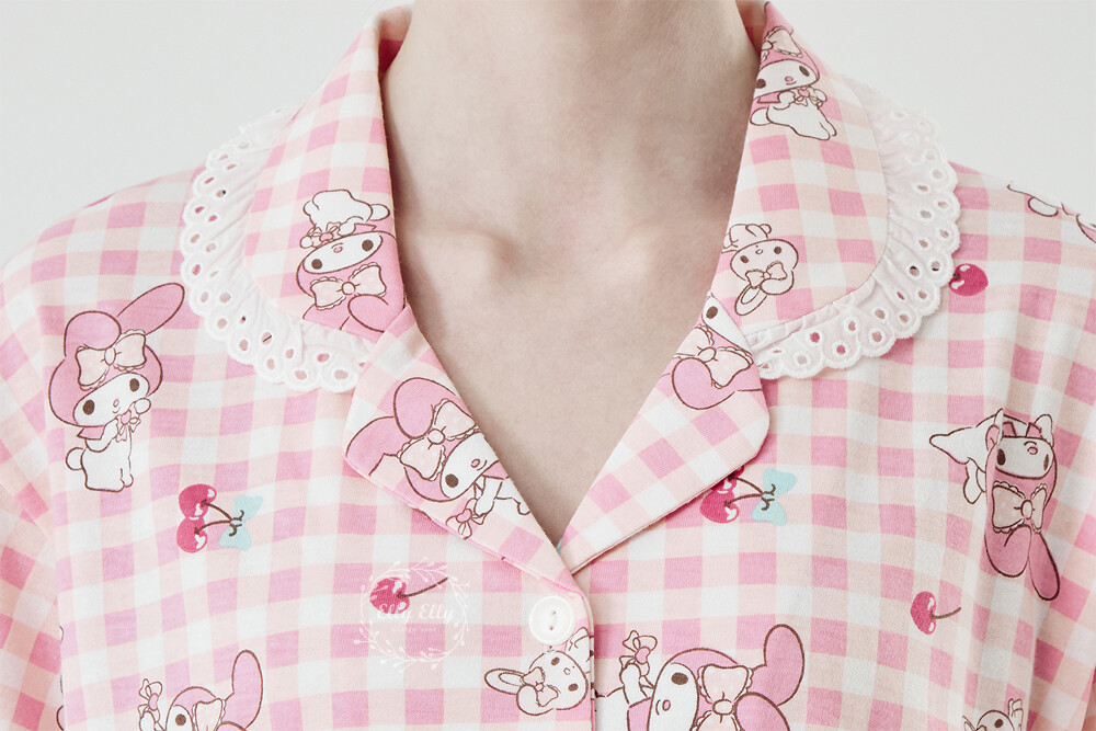 MM-0054 산리오정품 마이멜로디 레이스 와이카라 반팔상하