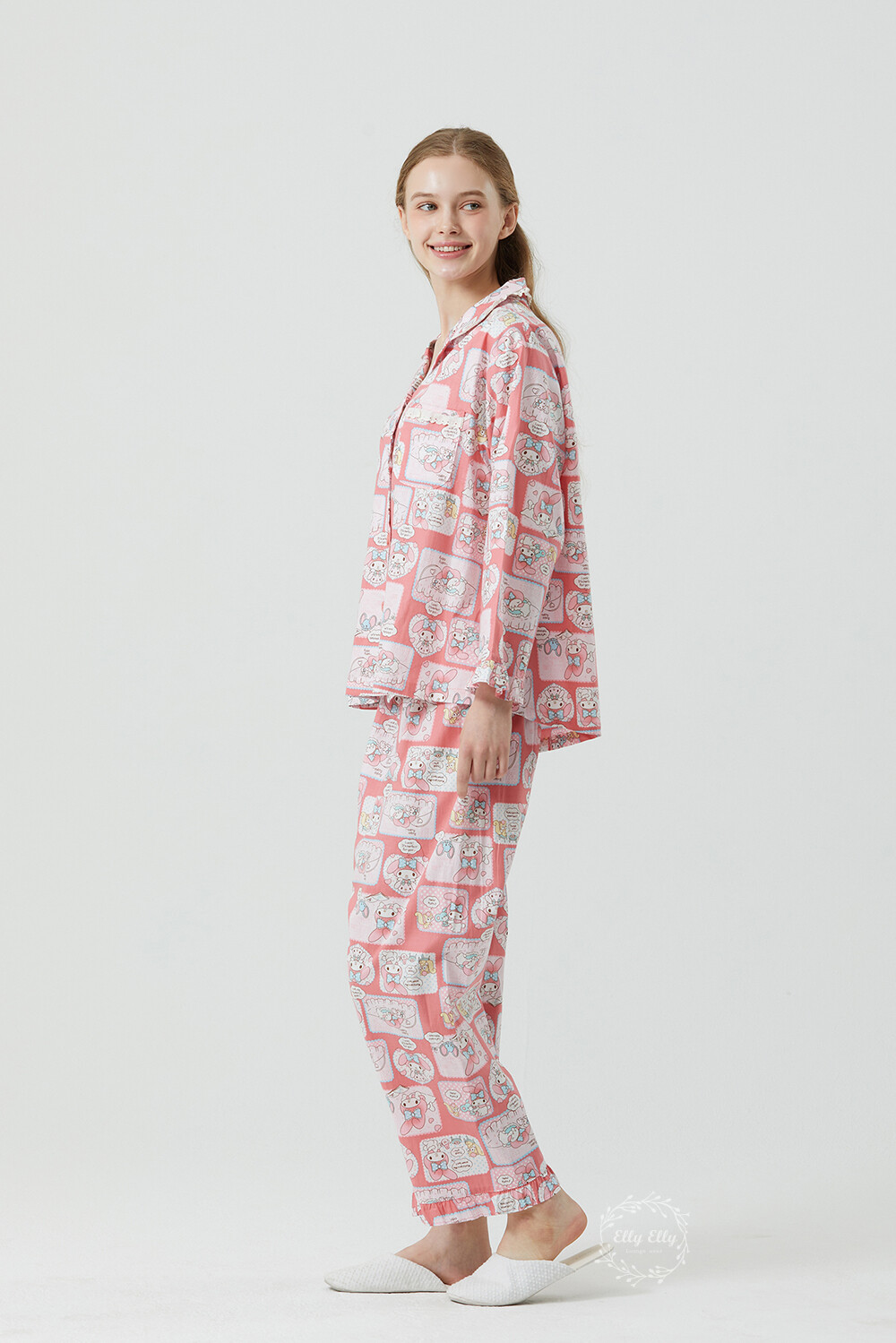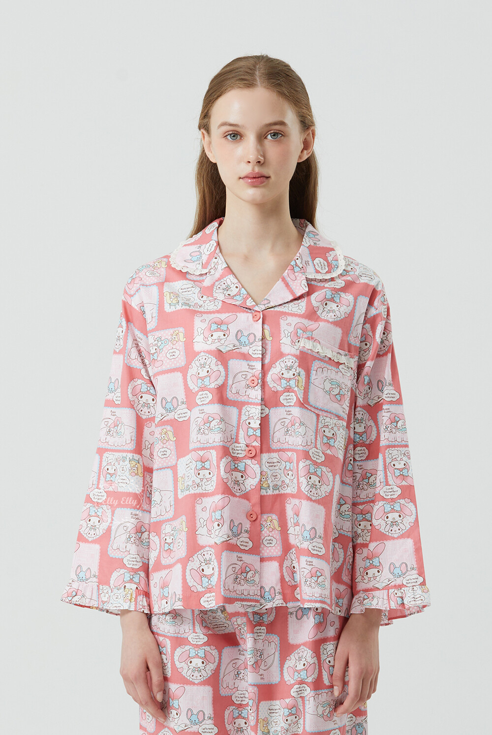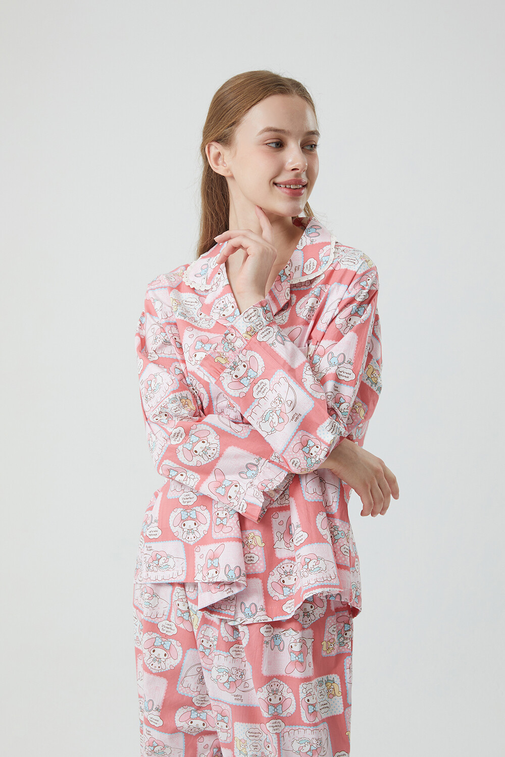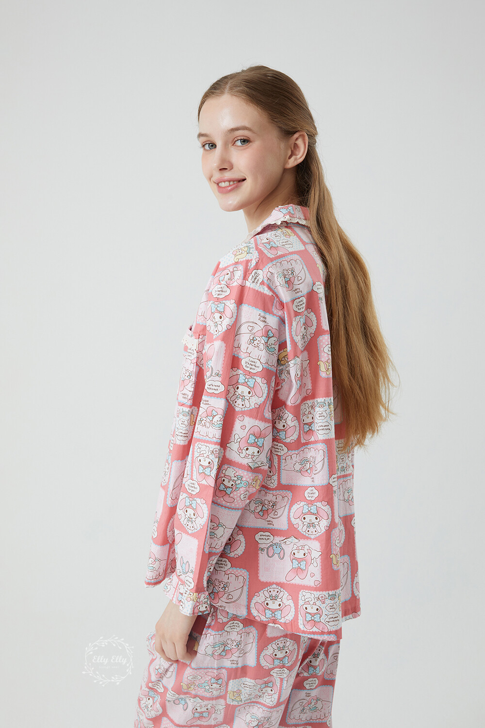 MM-0060 산리오정품 마이멜로디 와이카라 긴팔페어 잠옷세트 핑크