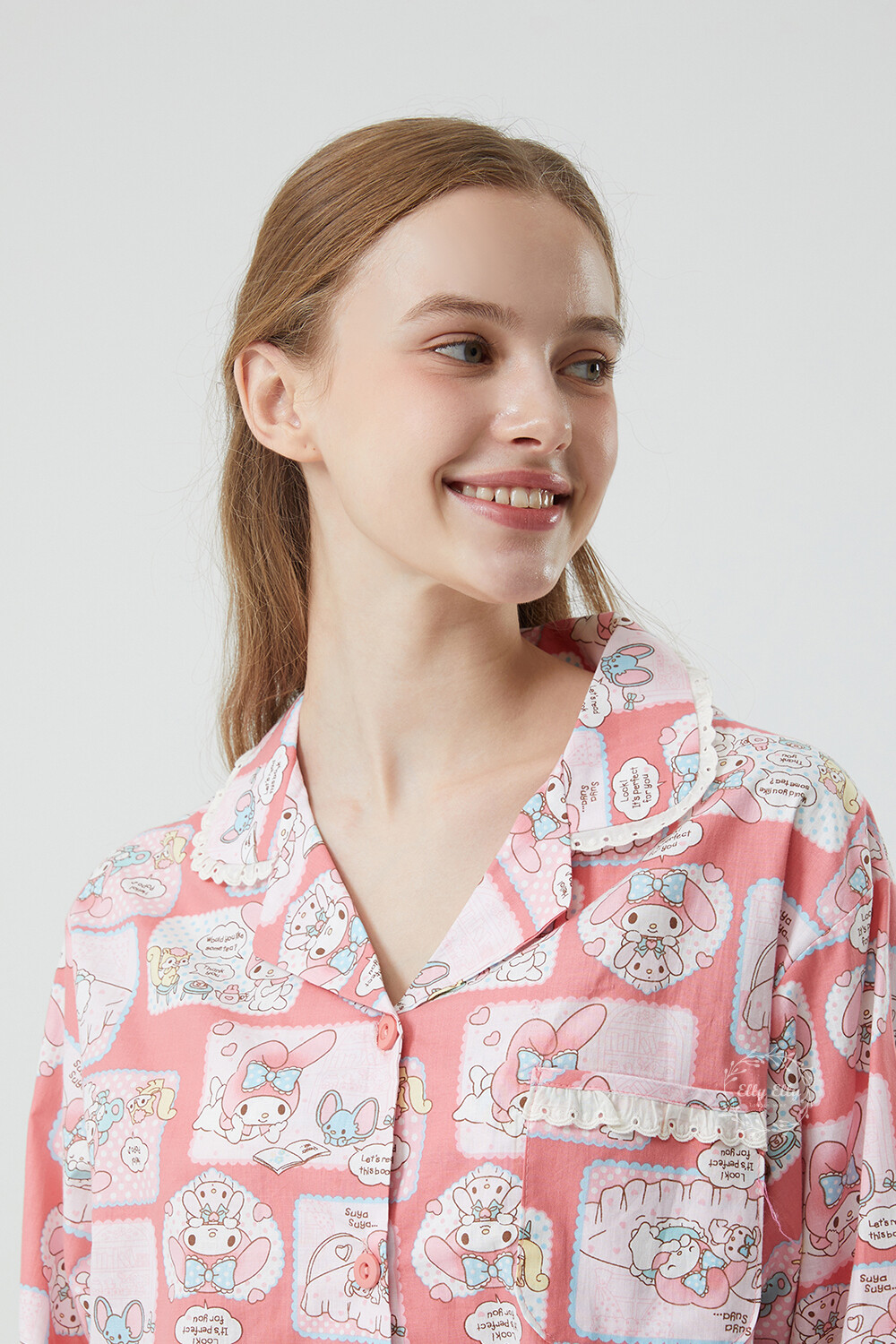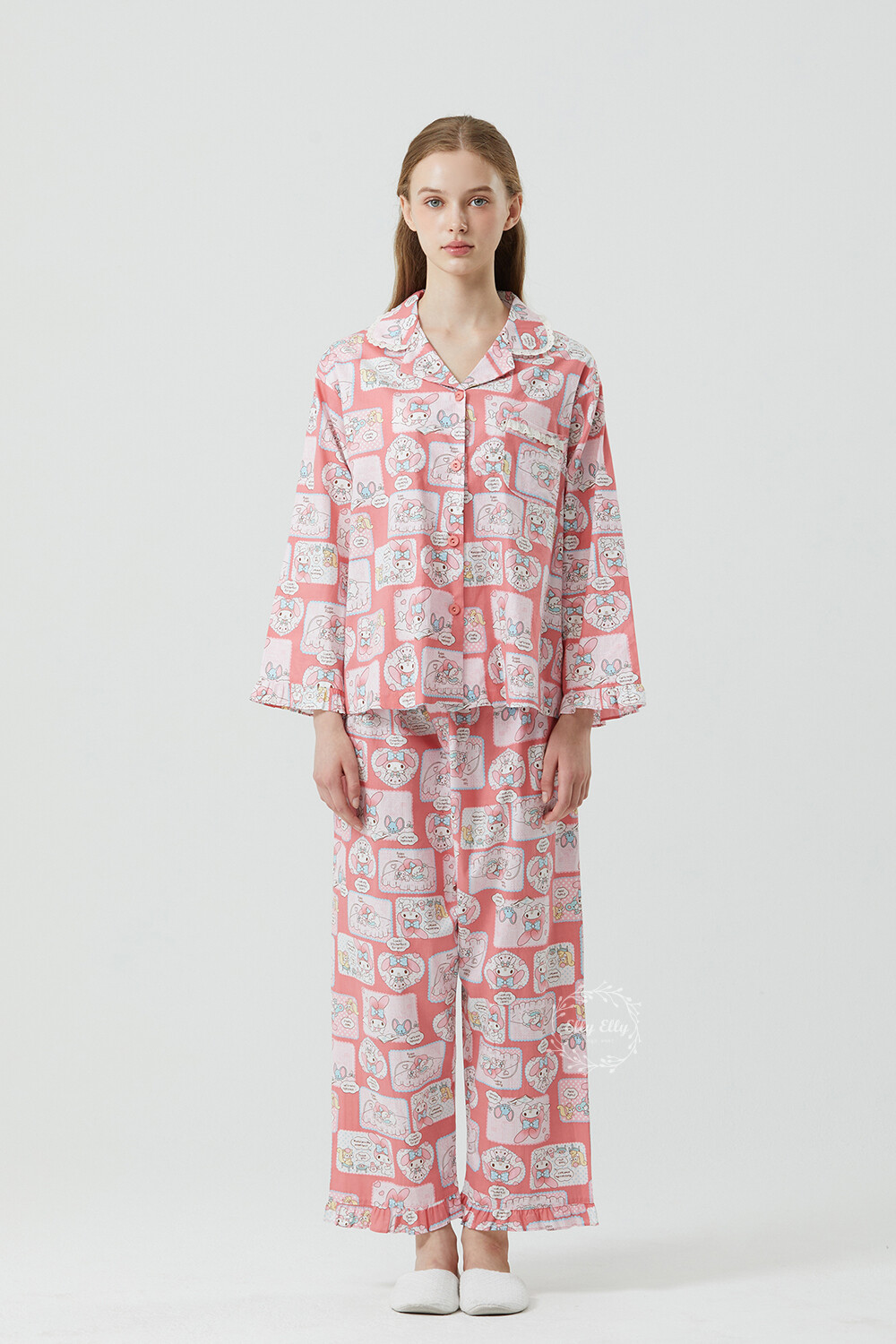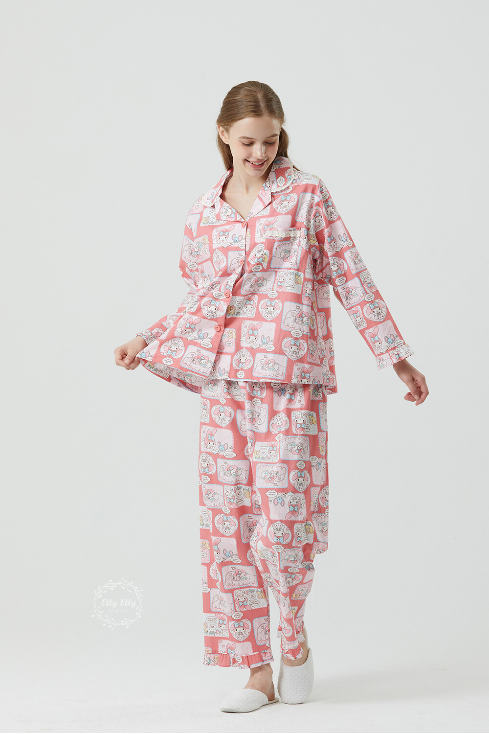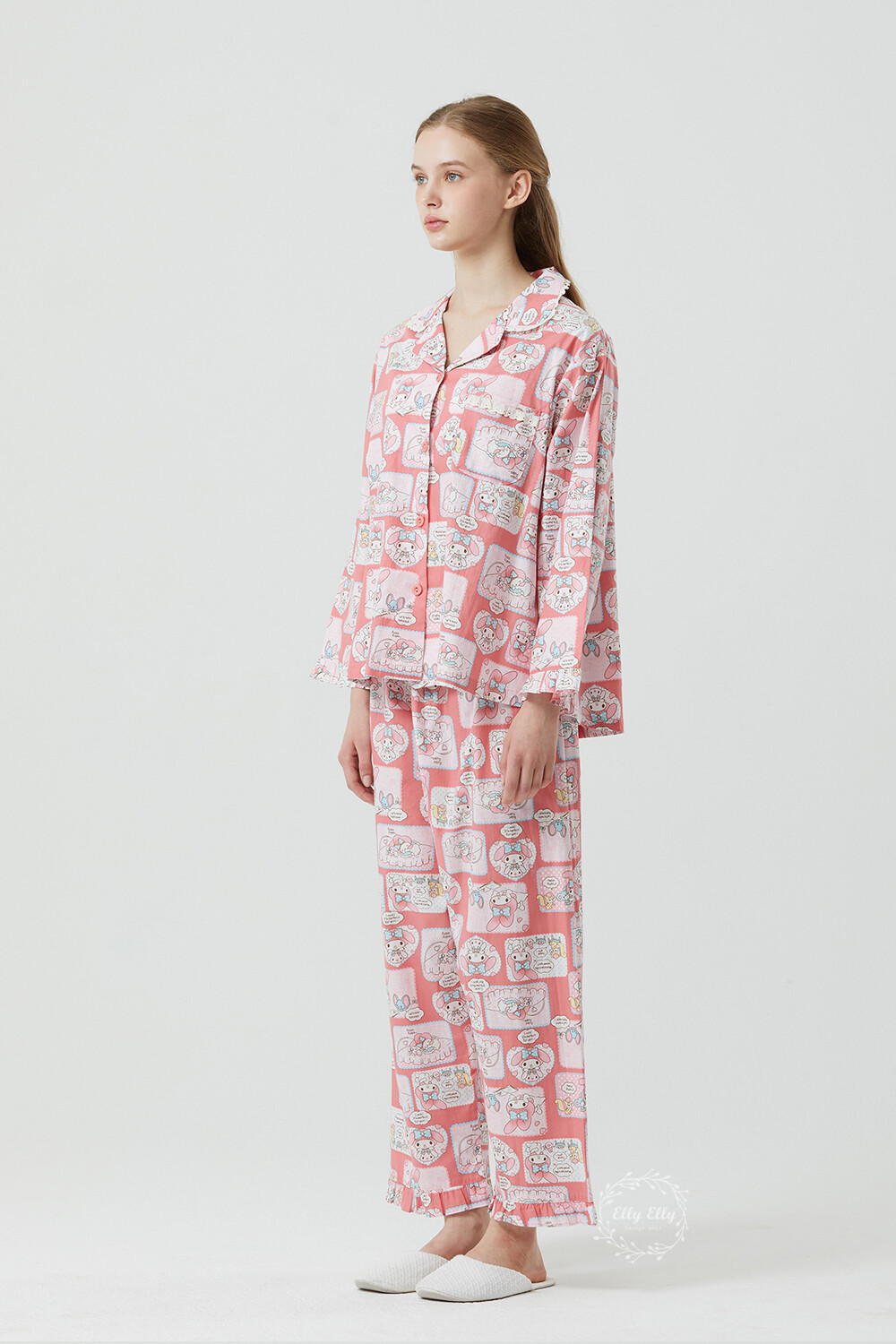 MM-0060 산리오정품 마이멜로디 와이카라 긴팔페어 잠옷세트 핑크