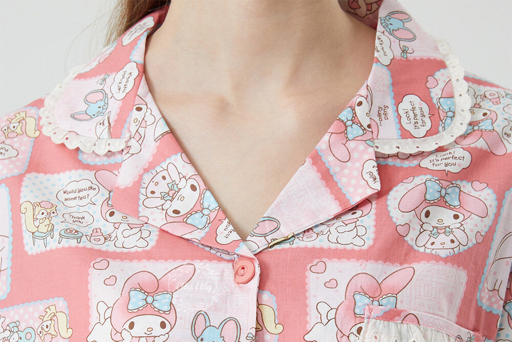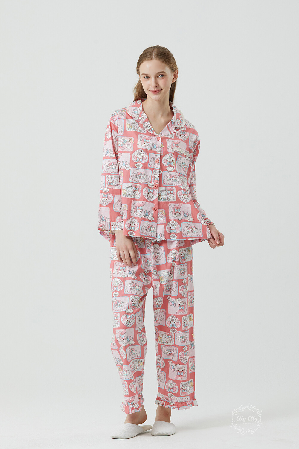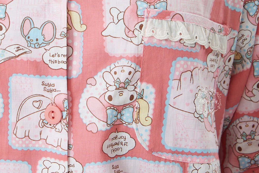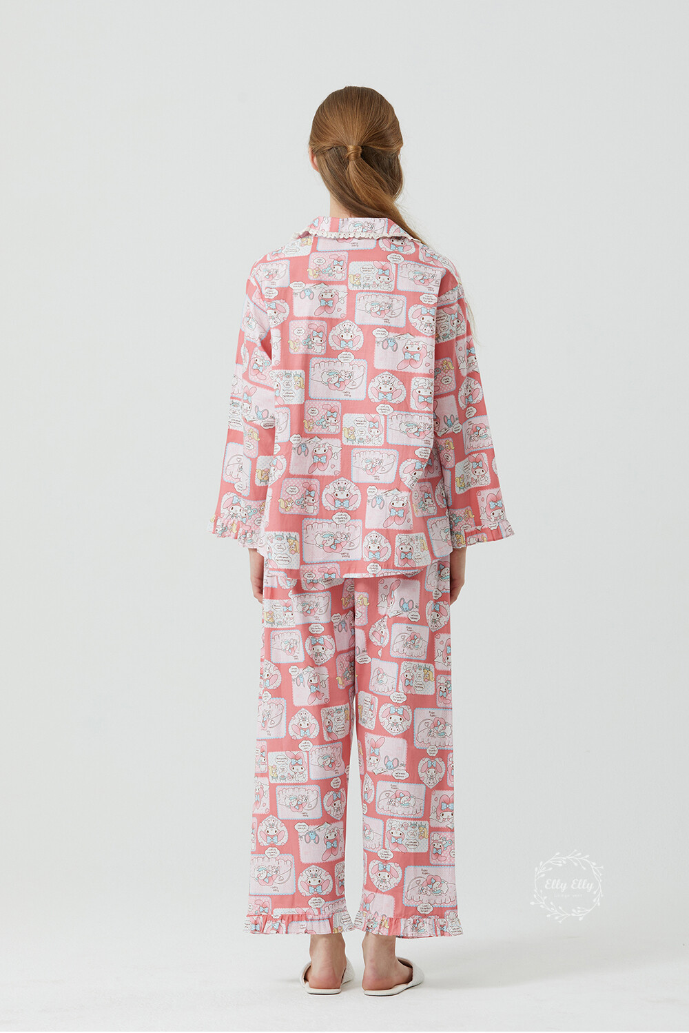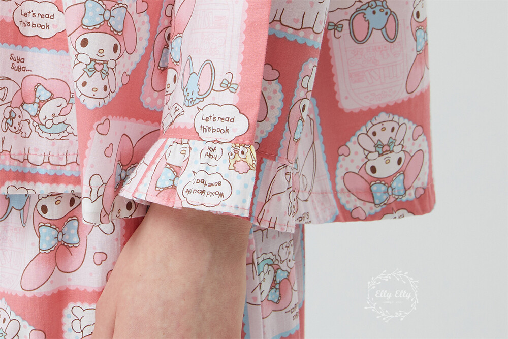 MM-0060 산리오정품 마이멜로디 와이카라 긴팔페어 잠옷세트 핑크