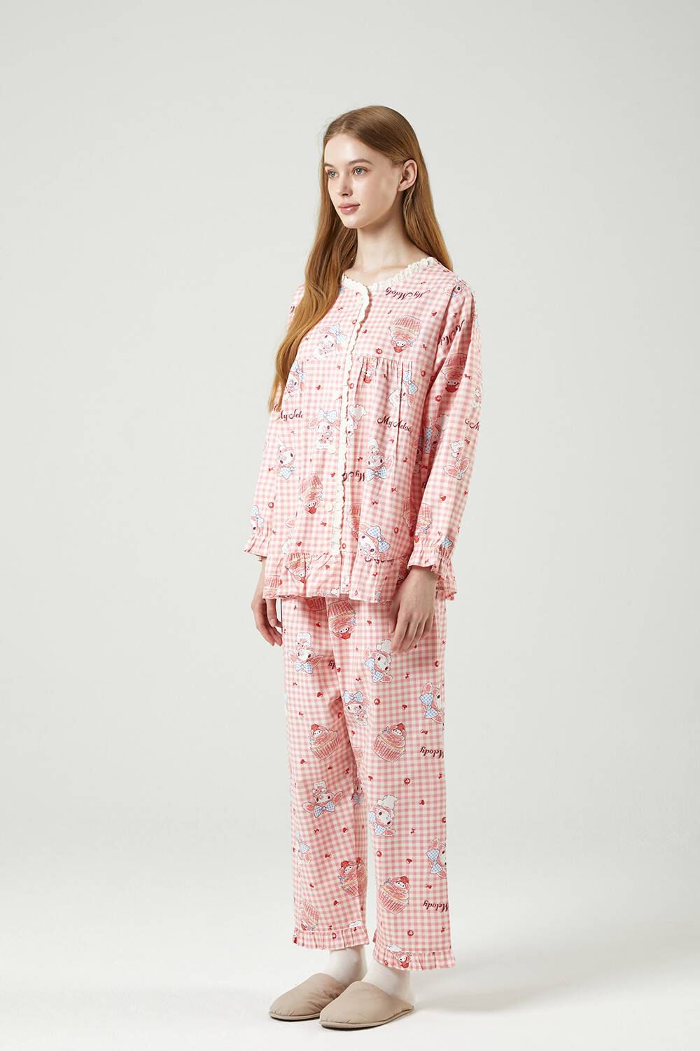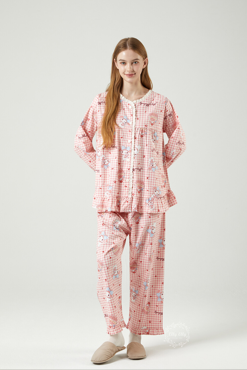 MM-0081 산리오정품 헬로키티 레이스프릴 긴팔상하 투피스
