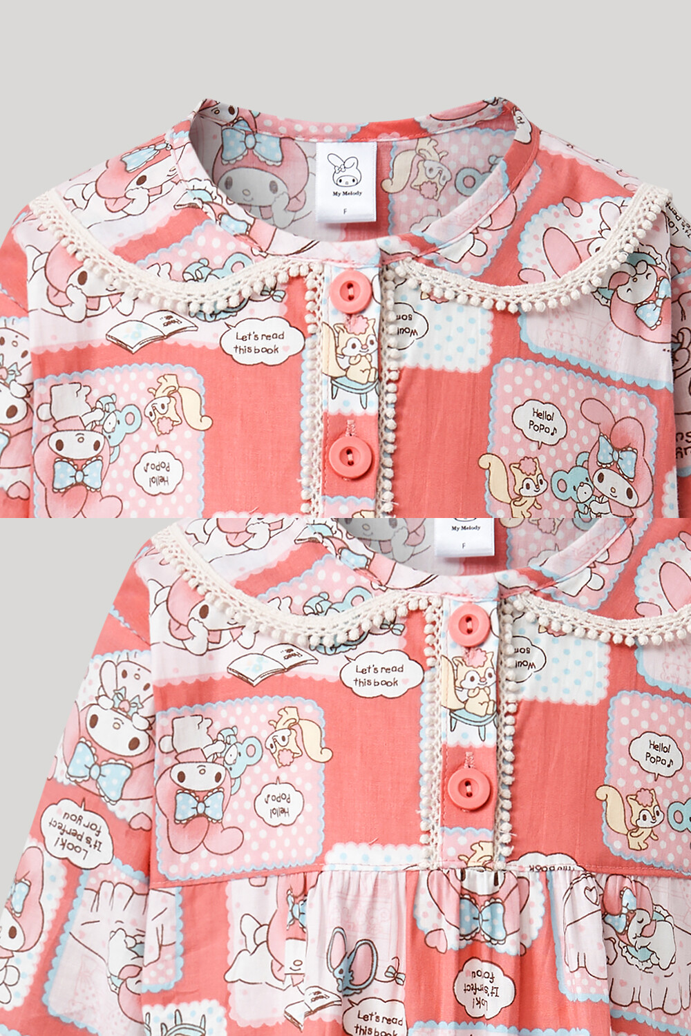 산리오 마이멜로디 토크마멜 여아동 긴팔상하 투피스 핑크