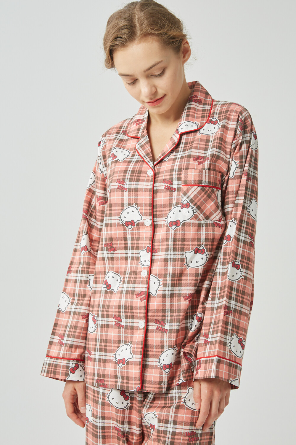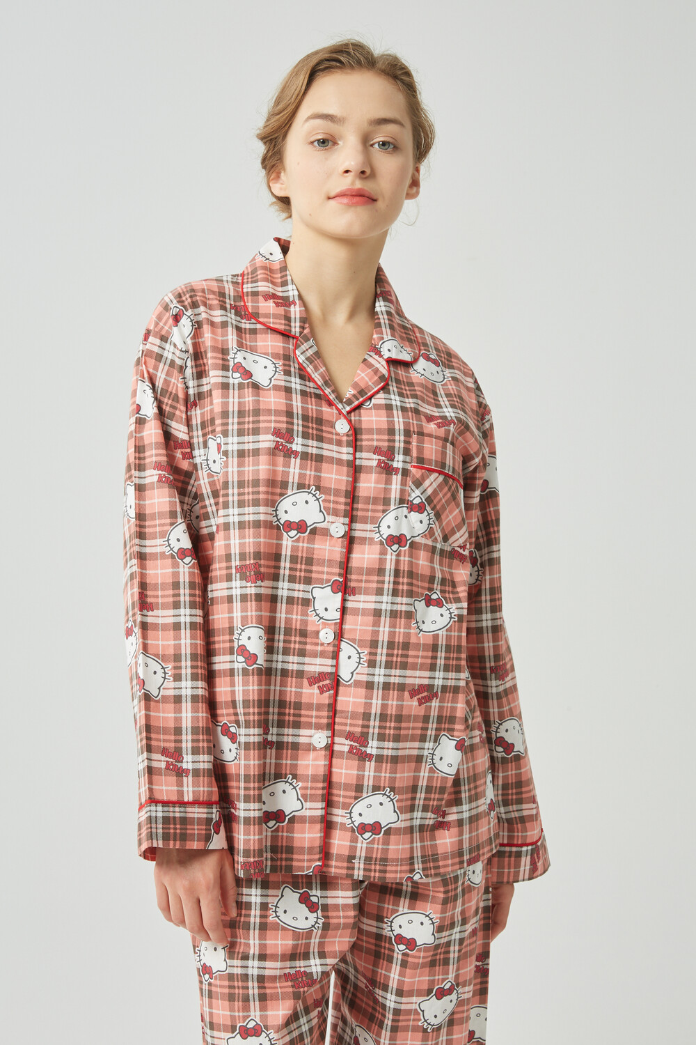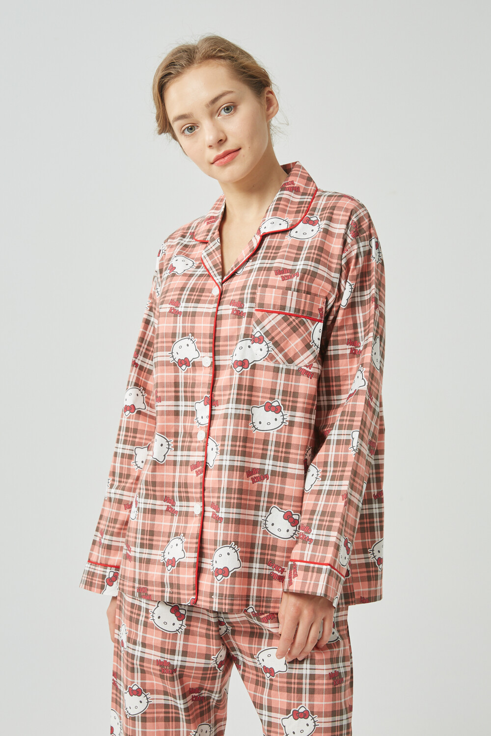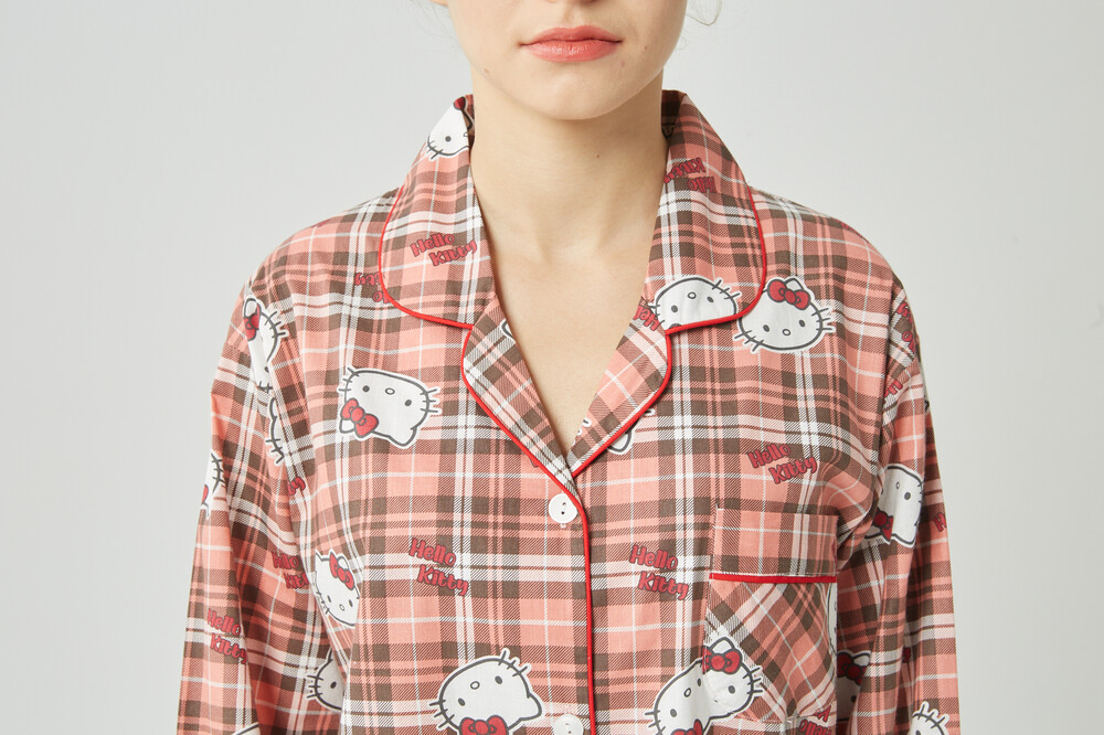 헬로키티 체크패턴 여성잠옷입니다.
