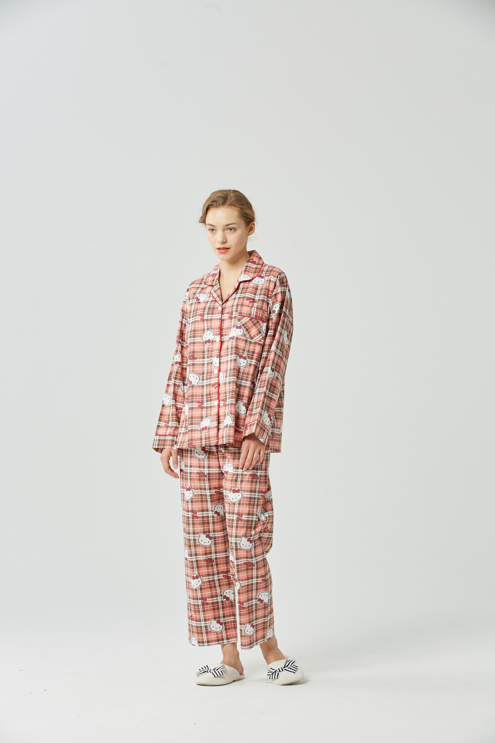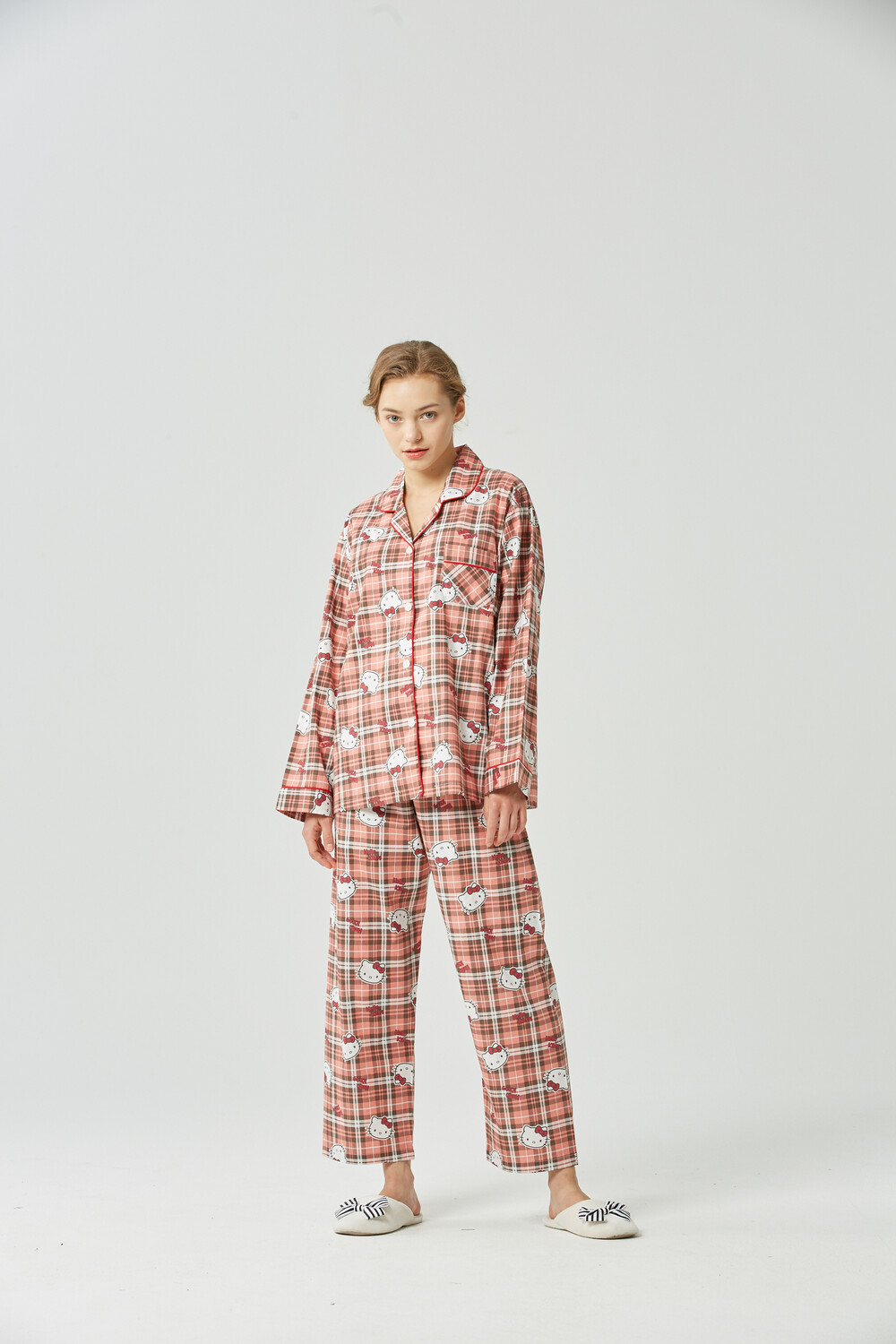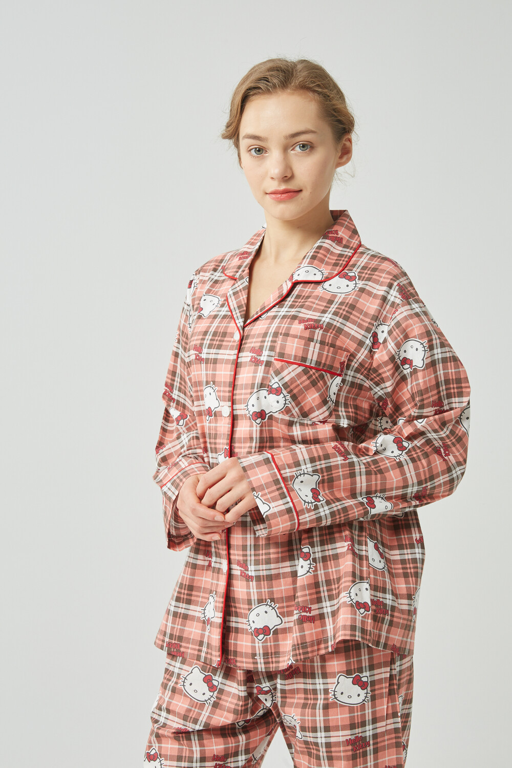 헬로키티 체크패턴 여성잠옷입니다.